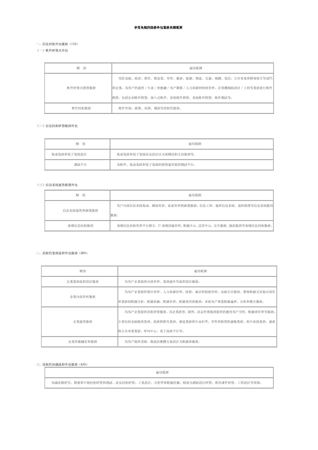 享受免稅的服務外包業務具體範圍
