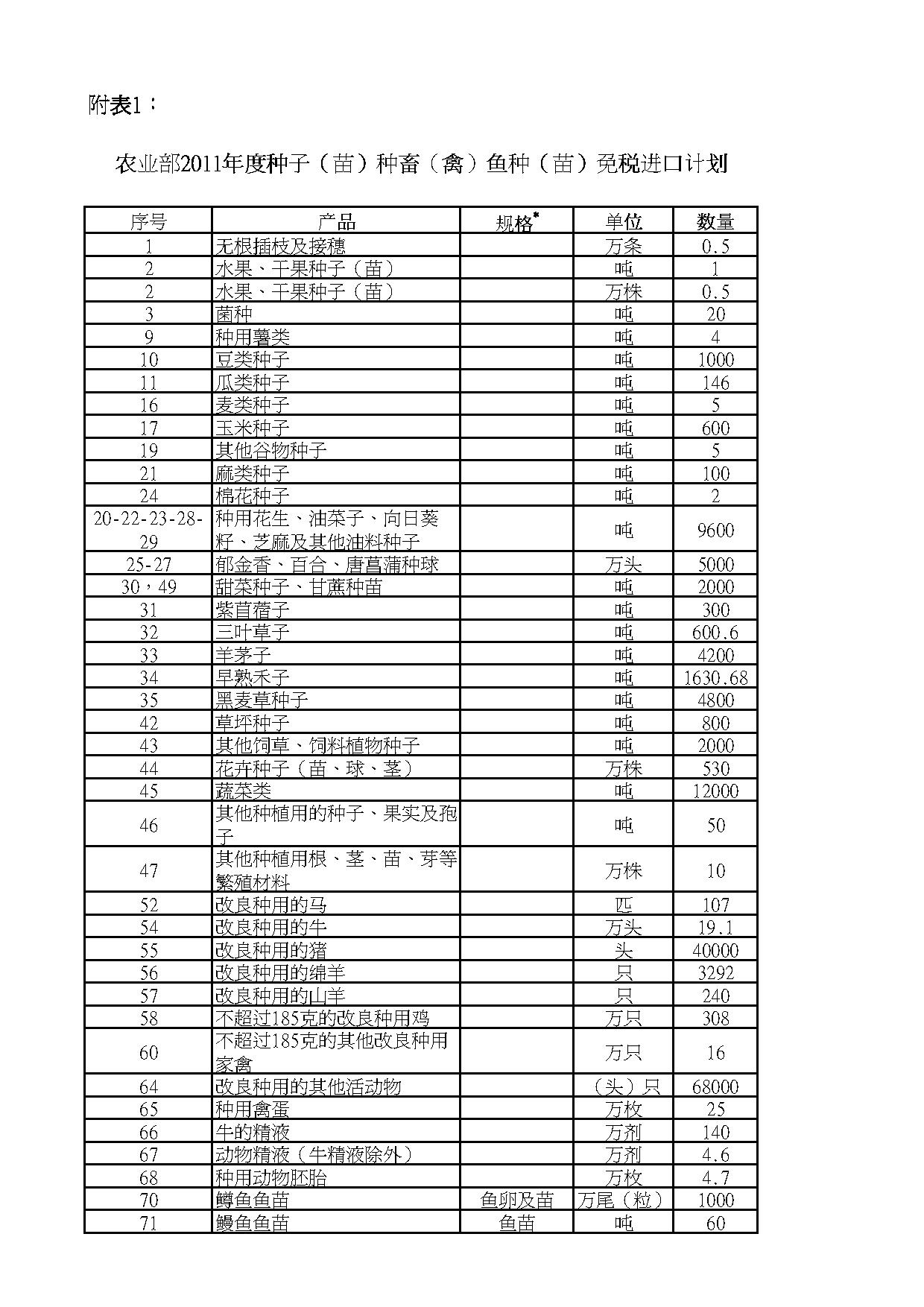 附表1農業部2011年度種子(苗)種畜(禽)魚種(苗)免稅進口計劃