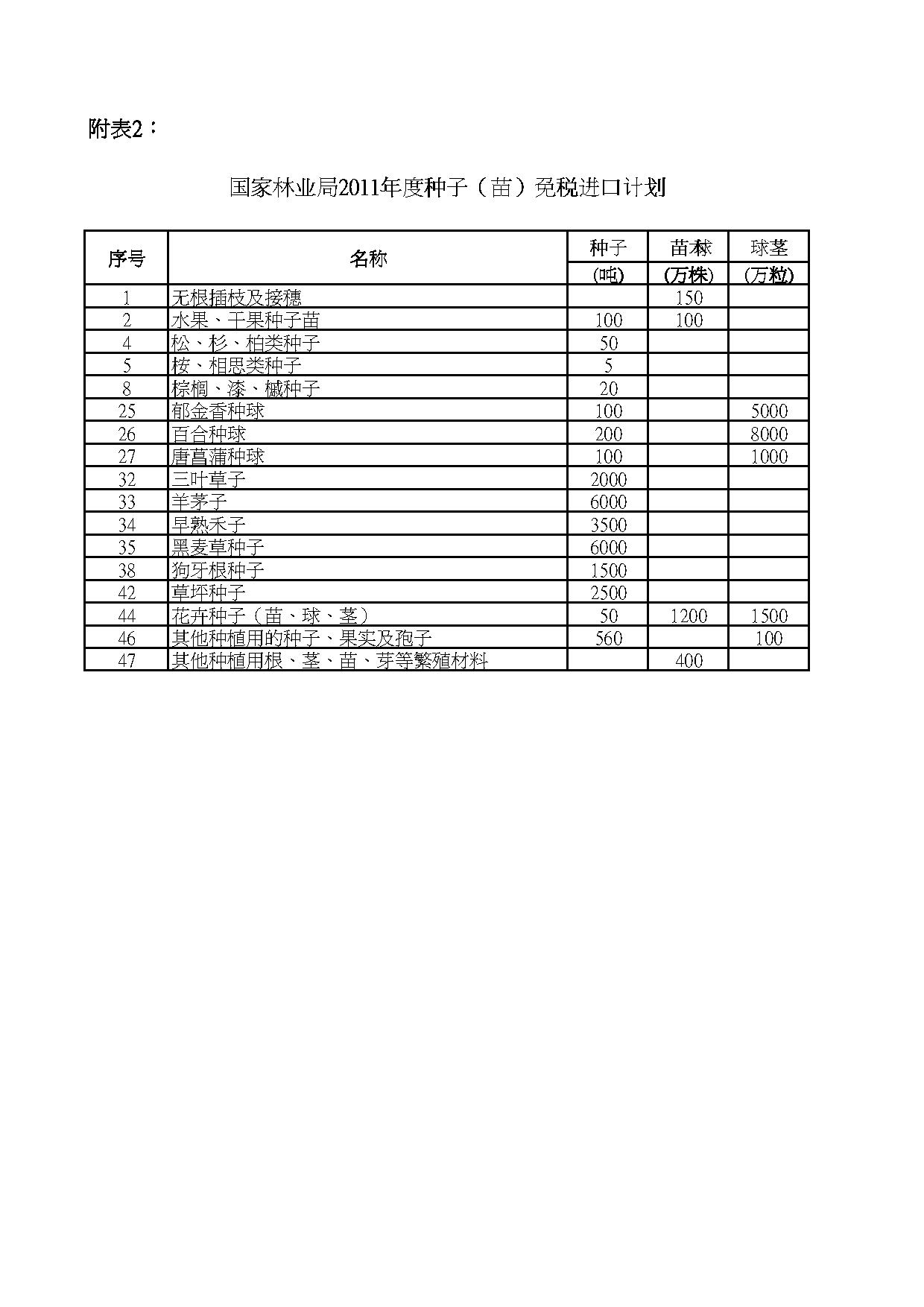 附表2國家林業局2011年度種子(苗)免稅進口計劃