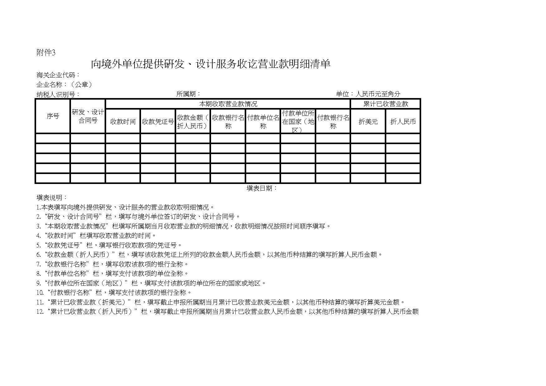 向境外單位提供研發、設計服務收訖營業款明細清單